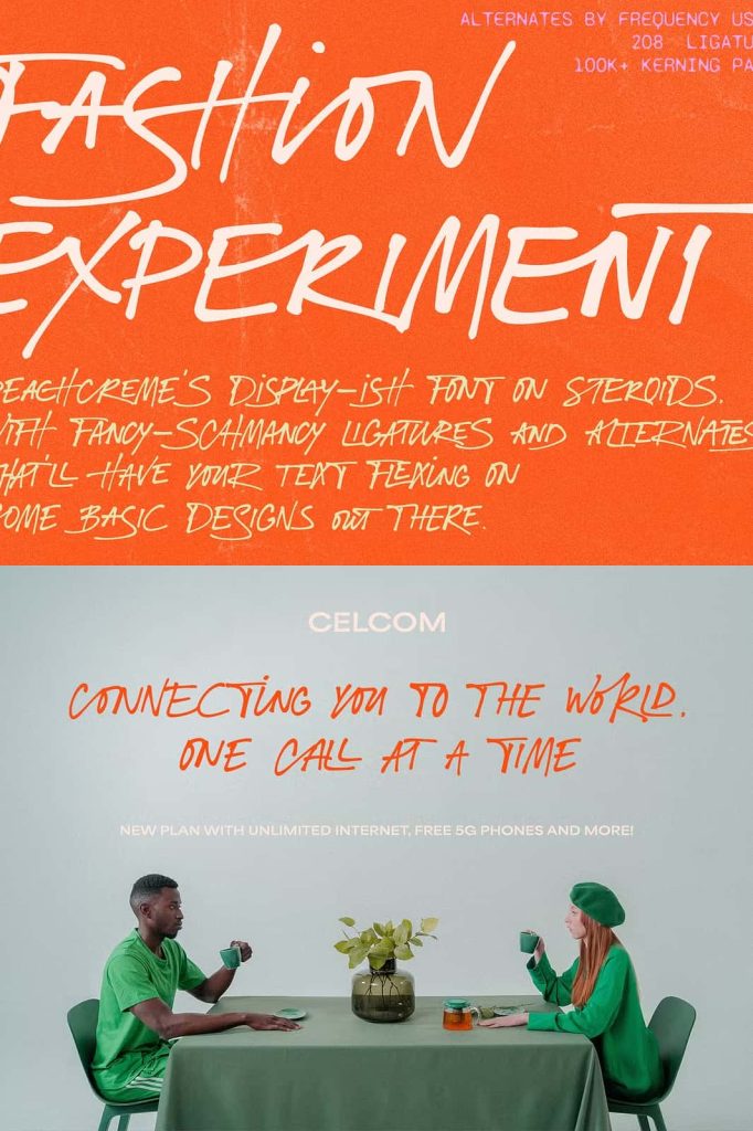 The bold all-caps structure also makes it easy to maintain visual hierarchy within layouts. Designers can highlight primary headlines with Fashion Experiment while supporting the layout with simpler fonts for body text.