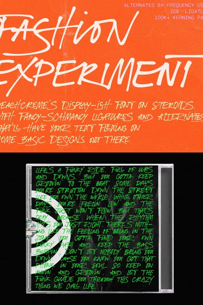 Music and entertainment designers will also appreciate the expressive personality of this font. Album covers frequently rely on unique typography to convey the mood and identity of the music. The funky handwritten style of Fashion Experiment adds artistic character that helps album titles feel distinctive and memorable.