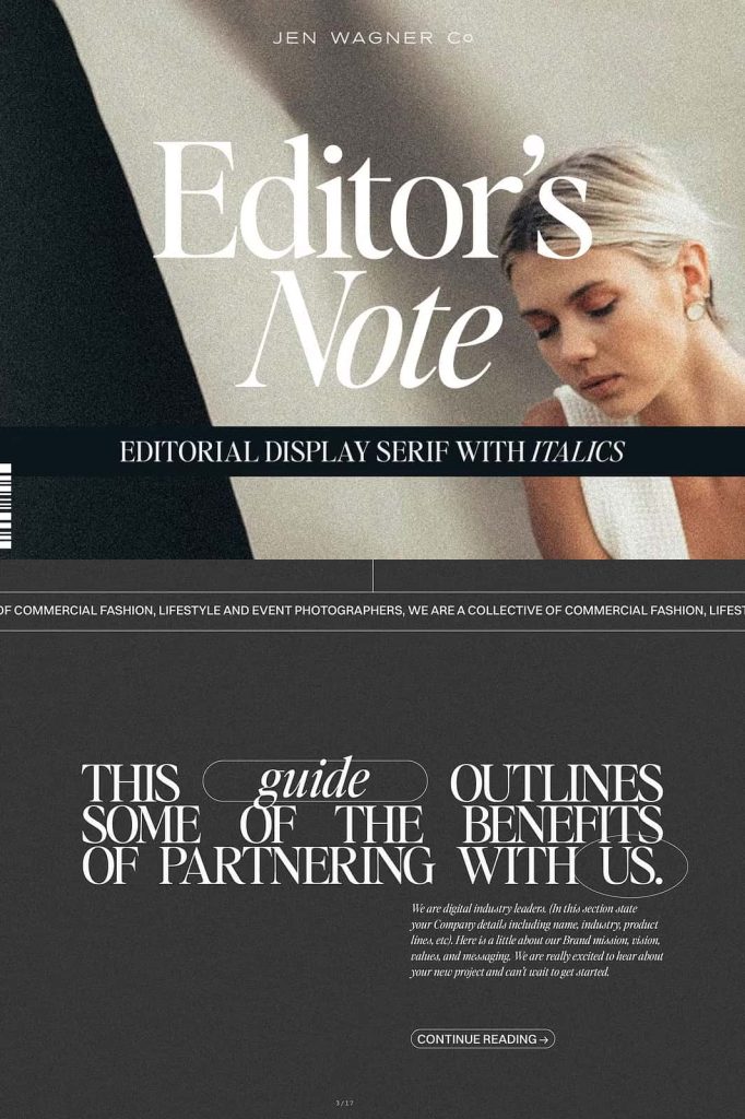 Digital publications and lifestyle blogs can use Editor’s Note to create modern editorial aesthetics. The font delivers strong typographic hierarchy that helps guide readers through online content.
