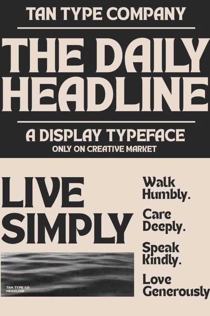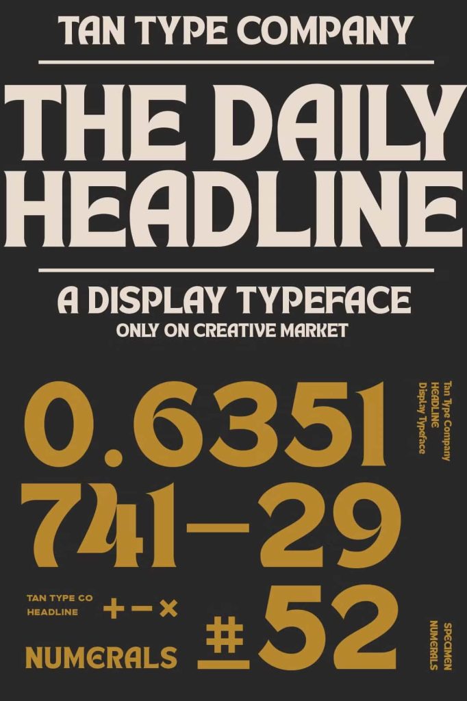 As the name suggests, TAN Headline performs best in headline and display typography. The bold serif structure allows titles and headings to stand out clearly in any layout. Designers can use the font to create strong typographic hierarchy and guide readers toward important information.