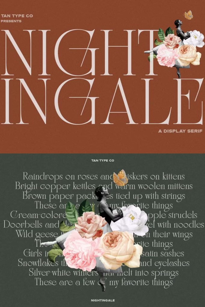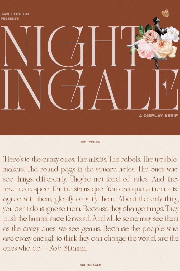 TAN Nightingale demonstrates how thoughtful typography can elevate the visual tone of a design. By combining elongated serifs, clean lines, and Art Deco inspiration, the typeface creates a unique blend of vintage glamour and modern refinement.