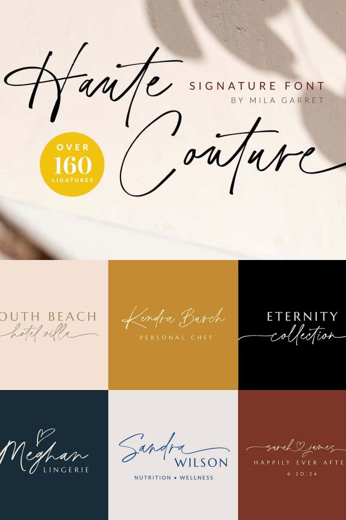 Whether you design handwritten-style logos, wedding stationery, photographer watermarks, or stylish website layouts, Haute Couture delivers the charm and elegance needed to elevate your typography. Add this refined signature font to your creative toolkit and transform ordinary text into beautiful handwritten design.