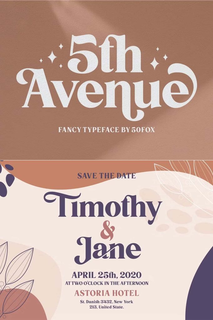 Wedding design often demands typography that feels elegant, refined, and memorable. 5th Avenue brings a sophisticated tone to wedding invitations and event stationery. Its graceful letterforms allow designers to craft invitation suites that feel both modern and timeless.